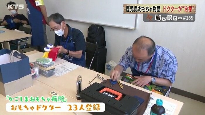 鹿児島市の「かごしまおもちゃ病院」は第1、第3、第4日曜日の午後1時から3時まで市内の公共施設などで“開業”していて、所属しているおもちゃドクターは23人。ボランティアで、修理代は無料だ。