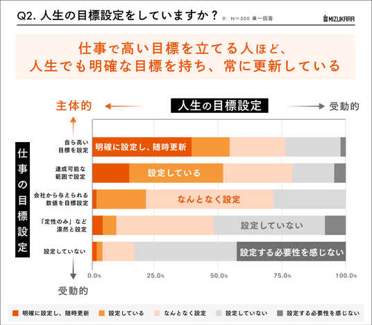 仕事で自発的に高い目標設定をする人ほど、人生の目標設定もクリア