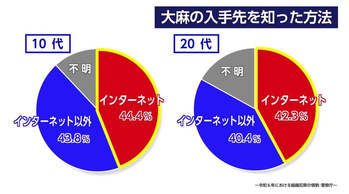 10代と20代の入手経路は「インターネット経由」が約4割を占め、その他は知人・友人からの紹介や譲渡が多い。