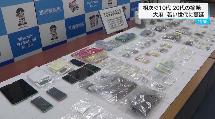 2025年1月から7月までに宮崎県内で大麻取締法違反で検挙された人は75人に上り、前年1年間の66人を既に超え、過去最多となった。検挙者のうち、20代と10代が61人と全体の8割を占めている。高校生が校内検査で大麻所持が発覚するケースや、大学生が海岸で所持しているところを逮捕されるケースなど、深刻な状況だ。