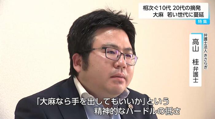 弁護士法人きさらぎの高山桂弁護士は、大麻で逮捕された人の弁護も担当し、YouTubeで若い世代に広がる大麻の危険性を訴えている。