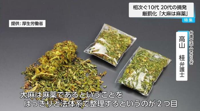 高山弁護士は「(大麻は)麻薬であるという考え方が国際的な流れ。日本としても、その国際的な流れに合わせるという理由がひとつ。大麻は麻薬であるということをはっきりと法体系で整理するというのが2つ目。3つ目としては、増加がずっと続いているので、罪を厳罰化して、その数を減少させる」と説明する。