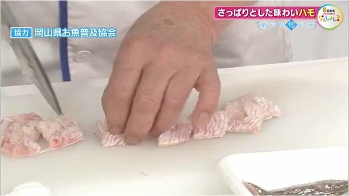 ただし、ハモには皮と身の間に細かくて硬い骨が無数にあるため、「骨切り」という特別な技術が必要。皮一枚を残して、身の中の骨を細かく断ち切るこの作業は、熟練の技が求められる。