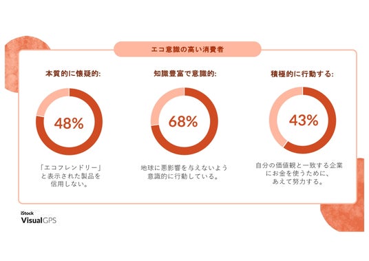 企業がサステナビリティに深く投資している場合も、これから取り組みを始めようとしている場合も、「何をしているか」と同じくらい「何を見せているか」が重要です。iStockの調査によると、日本の消費者の48%が「エコフレンドリーと表示された製品を信用していない」と回答。つまり、正しいビジュアル表現がなければ、本物の取り組みであっても見過ごされてしまう可能性があるのです。