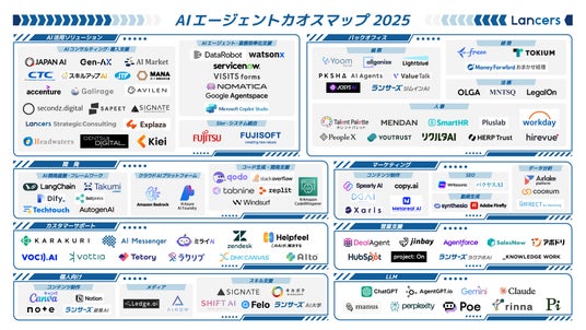 「個のエンパワーメント」をミッションに掲げ、人とAIが協働する社会の実現に向けてAX(AIトランスフォーメーション)を推進するランサーズ株式会社(本社:東京都渋谷区、代表取締役社長 CEO:秋好 陽介、東証グロース:4484、以下「ランサーズ」)は、国内外116件のAI関連サービスを網羅した最新資料「AIエージェント カオスマップ」を公開いたしました。