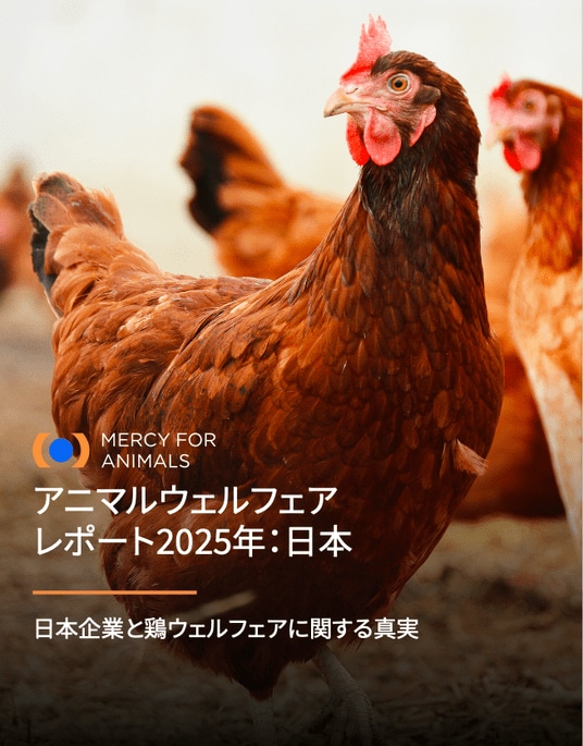国際家畜保護団体 Mercy For Animals は、2025年9月16日(火)に「アニマルウェルフェアレポート2025年:日本」の初版を発表しました。本レポートでは、日本の食品関連企業におけるケージフリー卵(平飼い卵)の取り組みを調査し評価した結果※、対象企業の大多数が有効な方針を持っていないことが明らかになりました。日本の企業は、ケージ飼育という重大なアニマルウェルフェア(家畜福祉・動物福祉)の課題に対応するために具体的かつ迅速な対応を迫られています。