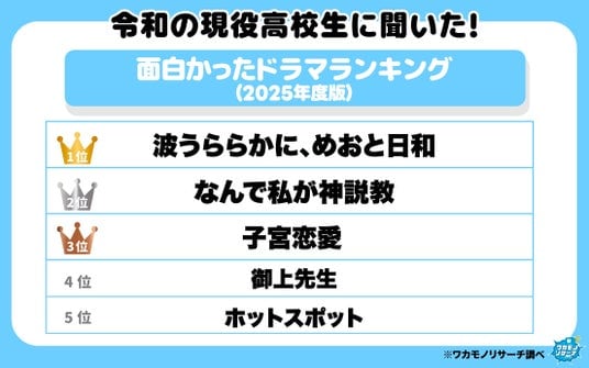 最後に、現役高校生に「今年見たドラマで面白かったのは何か?」を伺いランキングにしました。