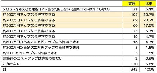 許容できるイニシャルコスト高は、約100万円アップ(30.7%)、約200万円アップ(20.2%)