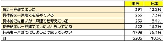 ※以下の調査は、最近一戸建てにした方、具体的に一戸建てを進めている方、具体的では無いが一戸