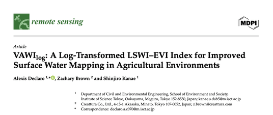 「VAWIlog:A Log-Transformed LSWI-EVI Index for Improved Surface Water Mapping in Agricultural Environments(VAWIlog:農業環境における表面水マッピングのための対数変換LSWI-EVI指標)」 (Remote Sens., 2025, 17, 2771; DOI: 10.3390/rs17162771)