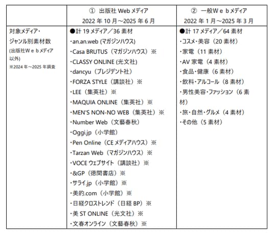 ■調査対象メディア :1.出版社Webメディア・タイアップ広告