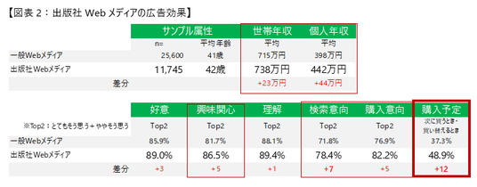 ・出版社Webメディアは購買力ある層へのリーチや、「次回の購入」の押し上げ効果が顕著