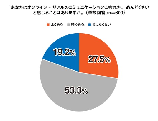 Q8. あなたはオンライン・リアルのコミュニケーションに疲れた、めんどくさいと感じることはありますか。(単数回答/n=600)