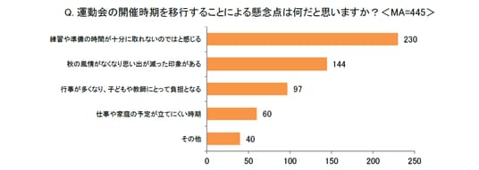 一方、開催時期の移行により練習や準備の時間が足りないと懸念を感じる親もいることが判明。