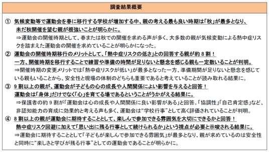 親の考える最も良い時期は「秋」が最多となり、未だ秋開催を望む親が根強いことが明らかに。