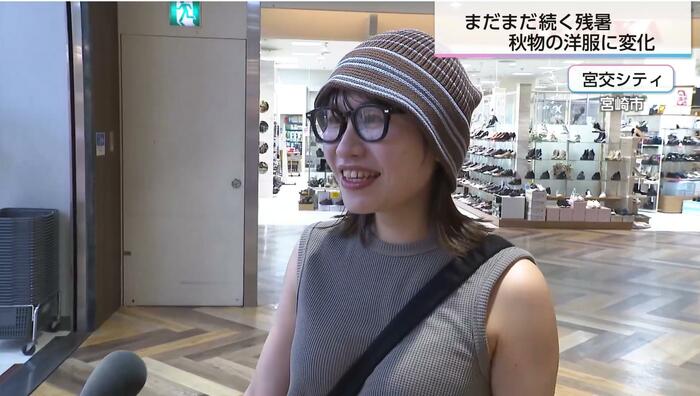 こうした中、宮崎市の宮交シティでは、秋物の洋服を買い求める客の姿が見られた。ある買い物客は「秋服は今の時期から楽しみたい。今日は茶色の帽子を取り入れてみた」と話し、別の客は「涼しそうな秋物が欲しい」と語った。