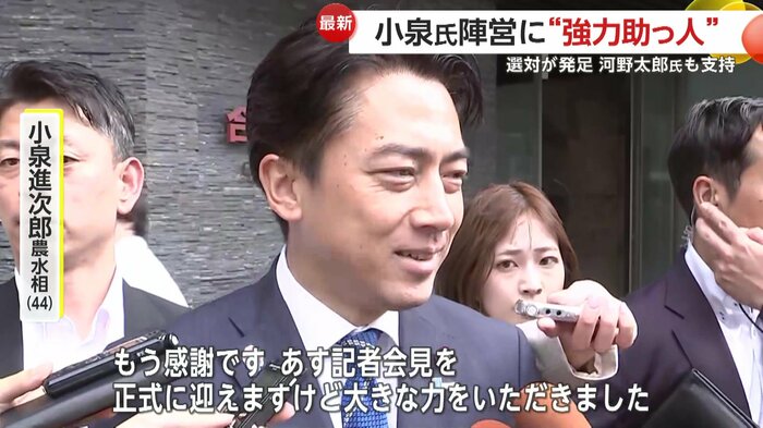 一方、総裁選に出馬する意向の小泉進次郎農水相には、この人が“助っ人”に…。