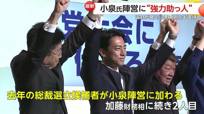 小泉陣営に2024年の総裁選の立候補者が加わるのは、加藤勝信財務相に続き、河野氏で二人目。