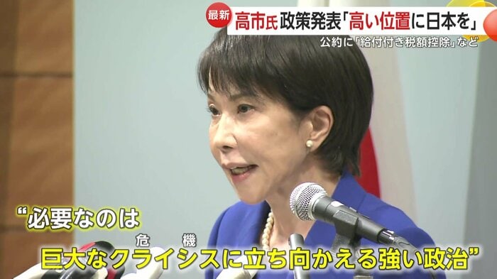 会見で高市氏は、“必要なのは、巨大なクライシス(危機)に立ち向かえる強い政治”と訴え、具体的な政策も披露した。