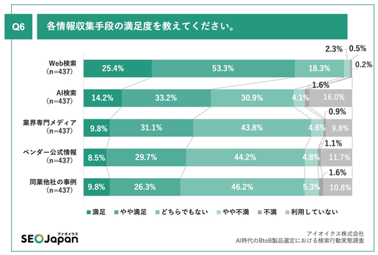 アイオイクス株式会社は、5年前からBtoB製品・サービスの選定や導入検討に関わっている会社員・経営層 437名を対象に、AI時代のBtoB製品選定における検索行動実態調査を実施。