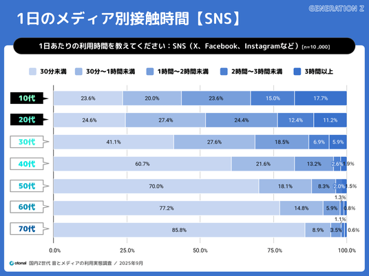 株式会社オトナル(本社:東京都中央区/代表取締役 八木太亮、以下、オトナル)は、2025年9月24日、年代別のメディア利用実態をまとめた「国内Z世代 音とメディアの利用実態調査」レポートを公開しました。