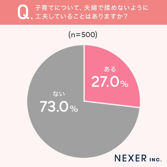 ■27%が子育てについて夫婦で揉めないように工夫していることが「ある」