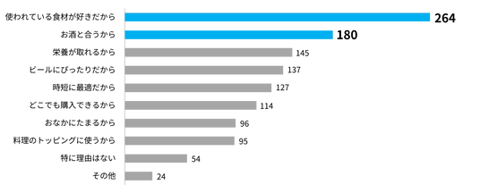2. 選んだ理由「使われている食材が好きだから」「お酒と合うから」