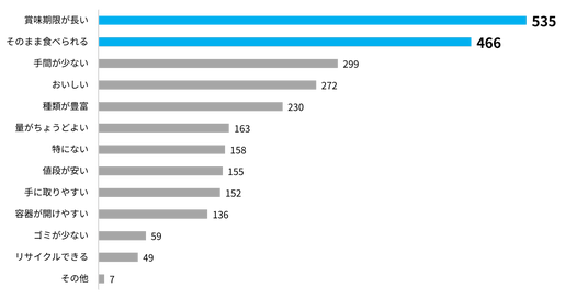 缶詰に対する印象を聞いたところ、「賞味期限が長い」(52%)、「そのまま食べられる」(45%)、「手間が少ない」(29%)が上位に。備蓄としての活用や、調理不要の手軽さが評価される結果となりました。