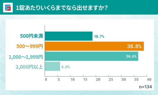1錠あたりに支払っても良いと考える金額は、「500円~999円」が最多となり、僅差で「1,000円~1,999円」が続きました。この金額は、ED治療薬の一般的な市場価格、特にジェネリック医薬品の価格帯(500円~999円)と先発薬の価格帯(1,000円~1,999円)と一致しており、服用者の価格に対する価値観が反映されていると考えられます。