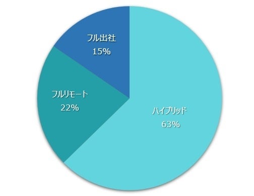こちらも春から大きな潮流の変化は起きていませんでした。リモートと出社併用のハイブリッド勤務形態が引き続き主流で、今回分析でも63%の案件が何らかの形でリモートワークを含む条件でした。前回調査ではハイブリッド勤務が約70%を占めていましたが、今回も同程度の水準となっています。
