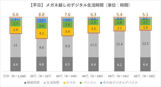 調査で判明 ─ 平日は活動時間の約4割を“メガネ越しの画面”に