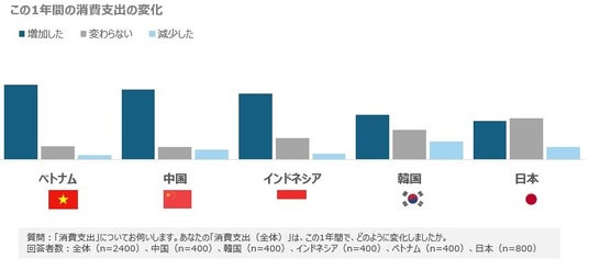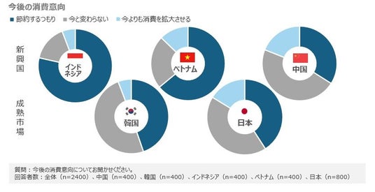 調査結果から、アジア新興国と日本・韓国の消費意識には明確な違いがみられた。新興国では物価高騰や将来不安を背景に節約志向が強まり、特にインドネシアやベトナムで家計防衛の姿勢が鮮明となっている。一方、中国では節約意識は一定程度あるものの、消費を維持・拡大しようとする層も比較的多くみられる点が特徴的だ。これに対し、また「消費を変えない」とする回答が多く、大きな行動変化を計画していない人が半数近くを占める。日本と韓国では、節約意向は新興国ほど高くはないものの、慎重な消費スタンスが続いている。消費拡大意向は限定的で、安定した生活の維持を重視する傾向が強いことが浮き彫りとなった。
