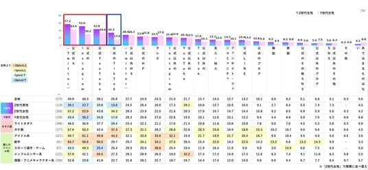 全体として公式のSNSが上位に挙がり、その中でも公式Xがほとんどの世代・性別・ジャンルで1位を占める結果に。公式以外のXも1~3位に多く挙がっており、情報収集に使いやすいツールの1つとなっていることがわかる。Z世代では推しとの出会いとしてもSNSが上位に挙がり、普段からSNSを活用して情報収集していることが窺える。