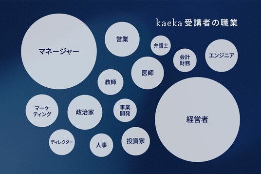 また、累計受講者数は7,000人を突破。マネージャーや経営者をはじめ、営業・医師・政治家・マーケティング・投資家・ディレクターなど、多様な専門職に利用が拡大しています。これにあわせ、kaeka受講者のバックグラウンドを可視化した「利用者属性マップ」も公開いたしました。