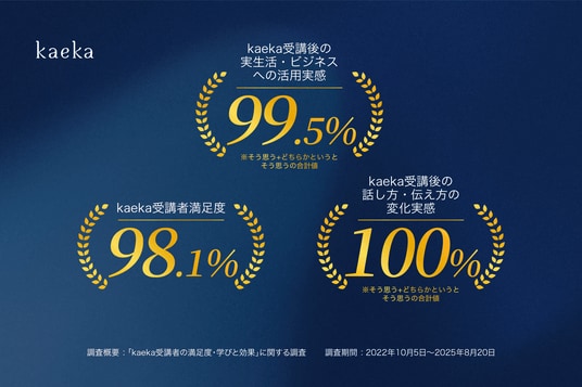 話し方トレーニングサービス「kaeka」を提供する株式会社カエカ(本社:東京都中央区、代表取締役社長:千葉佳織)は、受講者を対象に実施した最新調査の結果を発表しました。本調査では、kaeka受講者の98.1%が「満足」と回答し、99.5%が「実生活・ビジネスでの活用を実感」、さらに100%が「話し方・伝え方にポジティブな変化があった」と答えるなど、高い成果が明らかになりました。