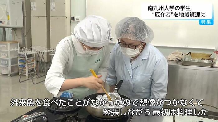 「外来魚を食べたことがなかったので、想像がつかなくて、緊張しながら最初は料理しました」と管理栄養学科の田久保ひかりさんは話す。