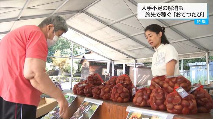 9月1日から販売フェアが始まった「すきむらんど」では、農家からの入荷や袋詰めなどの作業で一気に人手が必要になり、「おてつびと」を募集。この日、すきむらんどで「おてつたび」に参加したのは福岡県の女性だ。