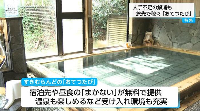 宿泊先や昼食のまかないが無料で提供され、温泉も楽しめるなど、受け入れ環境も充実している。