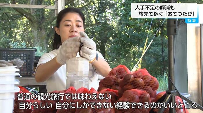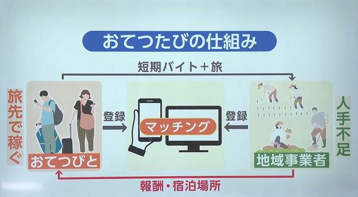 「おてつたび」という、旅行先の短期アルバイトで稼ぐ新たな仕組みがある。人手不足に悩む地域事業者と、農作業などを手伝う「おてつびと」をマッチングするもので、全国的に取り組みが広がっている。