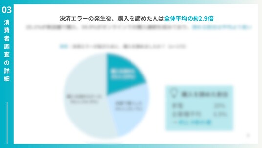 - 決済エラーの発生後、購入を諦めた人は全体平均の約2.9倍で、諦める割合は平均より高い