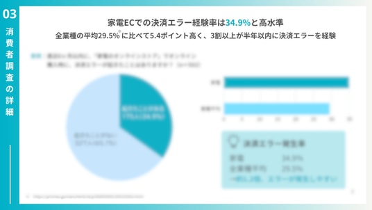 - 全業種の平均29.5%に比べて5.4ポイント高く、3割以上が半年以内に決済エラーを経験