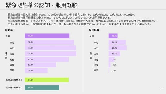 ・認知率:全体で66%、10~30代では70%を超える・服用経験率:全体で13%、10~20代は約25%