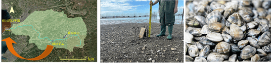 田井研究室は、この堆砂に注目。熊本県の緑川ダムの堆砂を下流の有明の干潟に運び、アサリの生息する干潟に覆砂して良質な生息砂床として活用したところ、ダム堆砂が干潟に定着するともにアサリの成長を1.6倍ほど促すことを実証しました。リスクである堆砂を海の資源復活に活かす本研究は高く評価され、「令和7年度 河川基金研究成果発表会」において環境大臣賞を受賞しました。