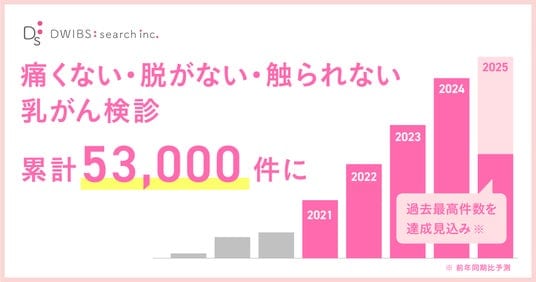 ドゥイブス・サーチ(代表:高原太郎 [医師]、所在地:東京都世田谷区)は、乳がん検診の新しい選択肢として普及を進めている 「無痛MRI乳がん検診・ドゥイブス法」 の累計受診件数が、2025年9月1日時点で 53,000件を突破 したことをお知らせいたします。