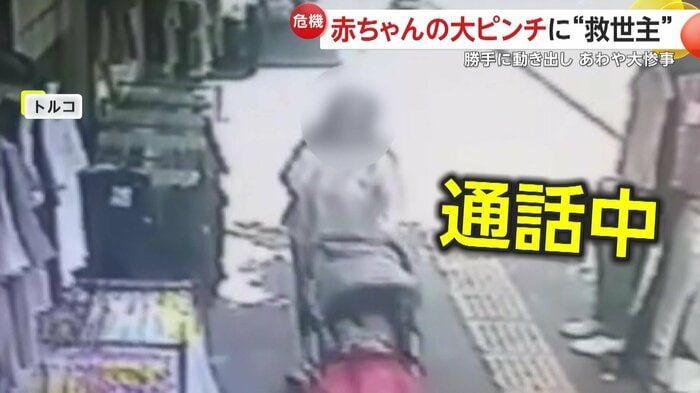 赤ちゃんを乗せたベビーカーがひとりでに動き出してしまった。