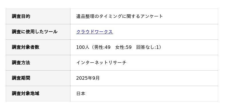 遺品整理のタイミングに関するアンケート調査の概要
