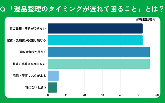 「遺品整理の時期が遅れることで困ること」は何だと思いますか?(複数回答可能)