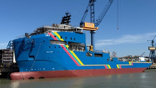 進水後の自航式ケーブル敷設船