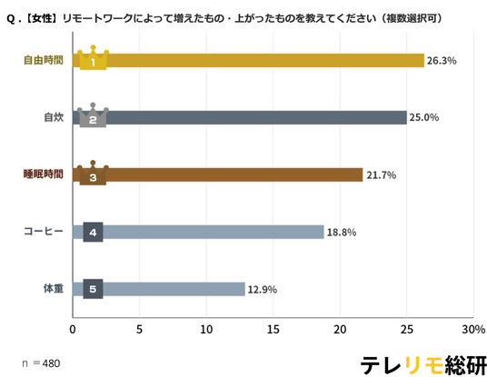 Q【女性】「リモートワークによって増えたもの・上がったものを教えてください(複数選択可)」アンケート結果