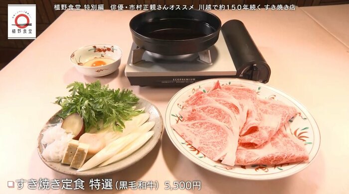 市村さんがおススメする「すき焼き」は、江戸時代から続く川越の名産・さつまいもがついている。植野さんも「すき焼きでさつまいもを食べるのは初めて。溶き卵にさつまいもはなかなか見ない光景」と一口食べ、「さつまいもらしい、ほっこりとした甘みがあります」と感動していた。